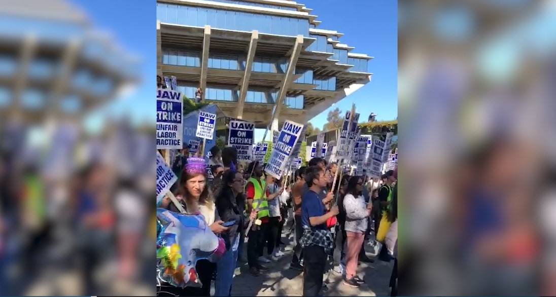 SAN DIEGO. -Casi 48.000 empleados académicos sindicalizados en las 10 sedes de la Universidad de California se declararon en huelga este lunes, exigiendo mejor paga y prestaciones. La huelga por parte de investigadores, estudiantes de doctorado, tutores, asistentes de maestros y evaluadores amenaza con perturbar la enseñanza en las aulas y los laboratorios justo antes de los exámenes finales de diciembre.