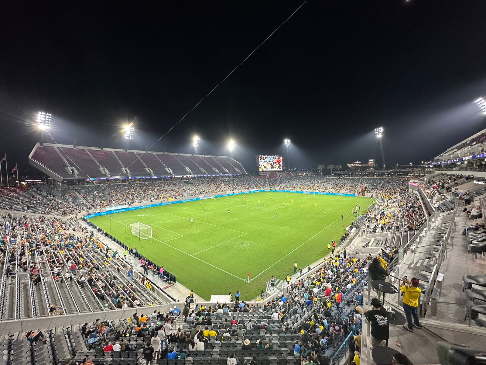Una considerable menor cantidad de personas se dieron cita al inmueble de Mission Valley, en comparación con lo visto en el partido entre Manchester United y Wrexham AFC de dos días antes, con 12,207 seguidores en el graderío, pero la fiesta se hizo presente.