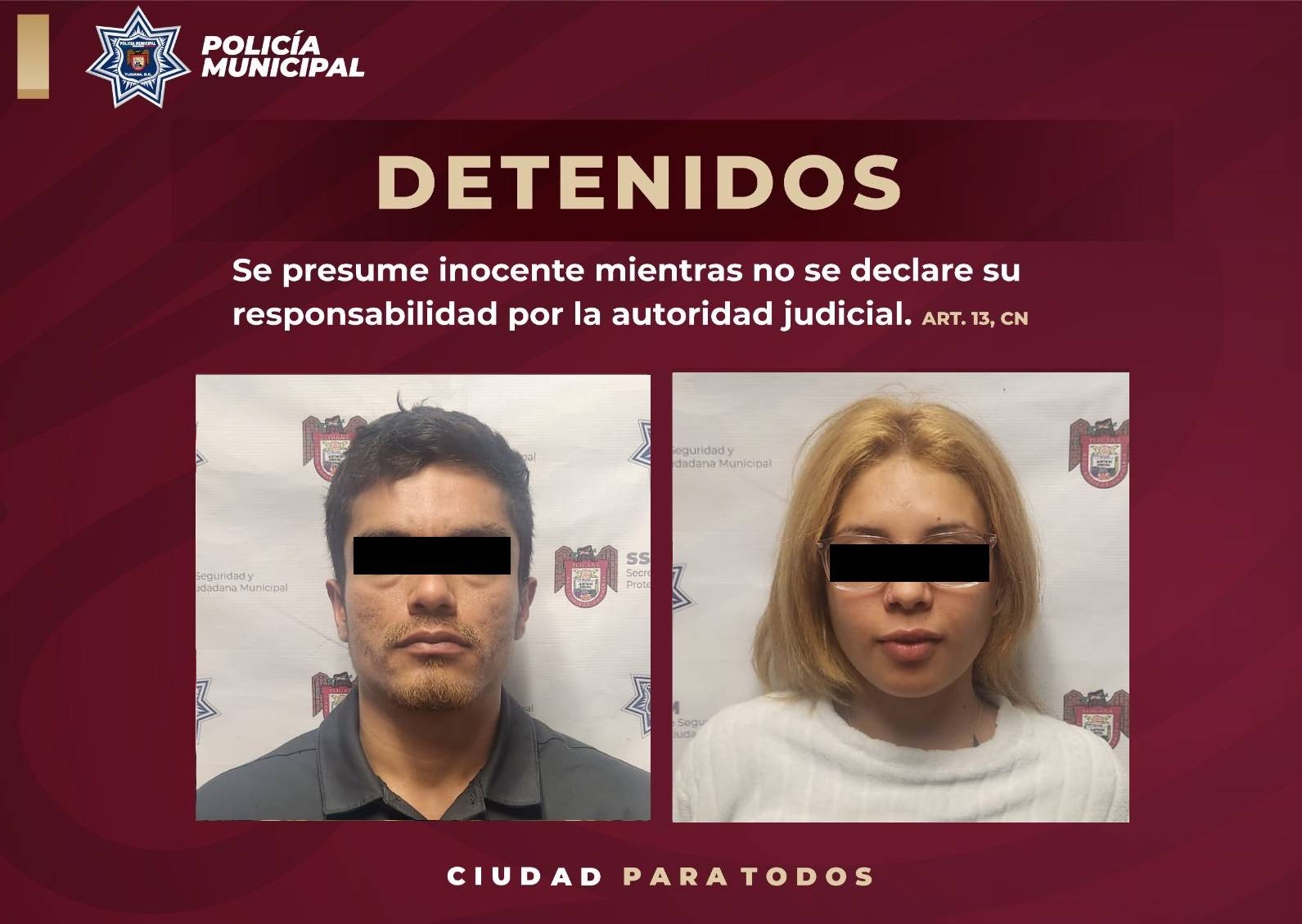 Al acercarse, las personas se encontraban nerviosas, fue entonces que una de ellas manifestó que los iban a cruzar a Estados Unidos a través de la valla fronteriza, por lo que rápidamente se procedió con la detención de Cristian “N” de 33 años y Citlali “N” de 24.