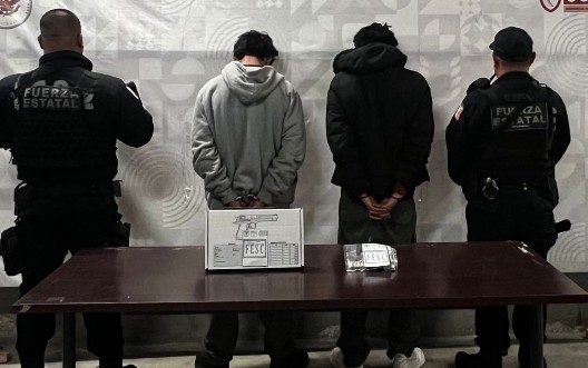 Tijuana | Agentes de la Fuerza Estatal de Seguridad Ciudadana detuvieron a dos menores de 17 años en Tijuana por portación de arma de fuego, tras observar conductas sospechosas durante patrullajes preventivos en la colonia Sánchez Taboada Produtsa.