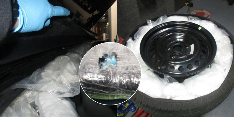 En la inspección secundaria, utilizando un escaneo de rayos X, se detectaron anomalías en varias partes del vehículo, como el muro cortafuegos, los asientos traseros, la llanta de repuesto y el maletero.