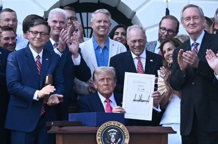 Estados Unidos | El presidente Donald Trump firmó este viernes en la Casa Blanca su ambicioso paquete de exenciones fiscales y recortes de gasto, logrando una victoria legislativa clave tras presionar para un apoyo casi unánime de los republicanos en el Congreso. La ceremonia se realizó en los jardines de la residencia presidencial, flanqueado por legisladores y miembros de su Gabinete, en un ambiente festivo previo al Día de la Independencia.