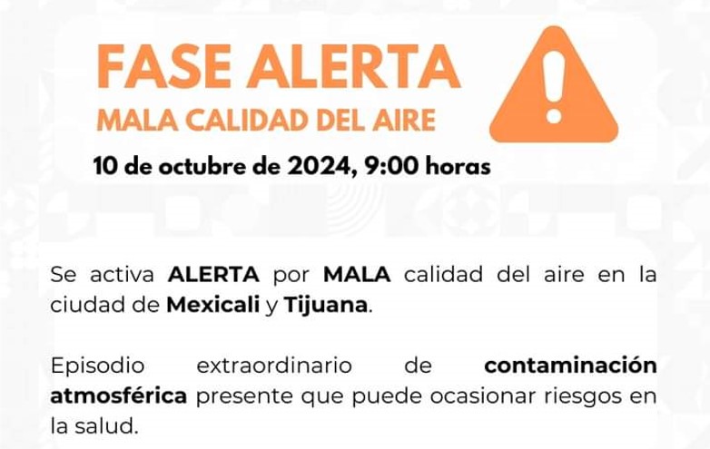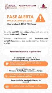 Tijuana | Este jueves, se activó la fase de alerta por contaminación atmosférica en Mexicali y Tijuana. Se insta a la población a tomar precauciones ante los riesgos para la salud.