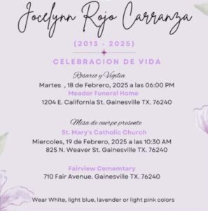 Gainesville Independent School District calificó el caso como “grave” en un mensaje a los padres, sin hacer referencia a las denuncias de acoso. La menor murió en un hospital, días después de intentar hacerse daño. El funeral de Jocelynn se llevará a cabo este miércoles.