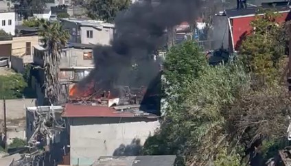 Tijuana | Un incendio se registró la tarde de este jueves en una casa de tres niveles, ubicada en la calle David León, de la colonia Cumbres del Rubí en Tijuana.