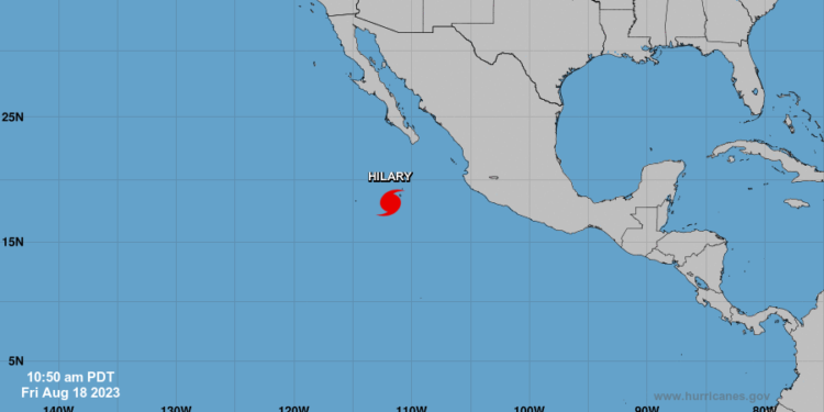 Según el Centro Nacional de Huracanes de Estados Unidos, “Hilary” se encuentra a unos 60 millas al suroeste de Isla Socorro en México, con vientos de velocidad máxima de 75 millas por hora.