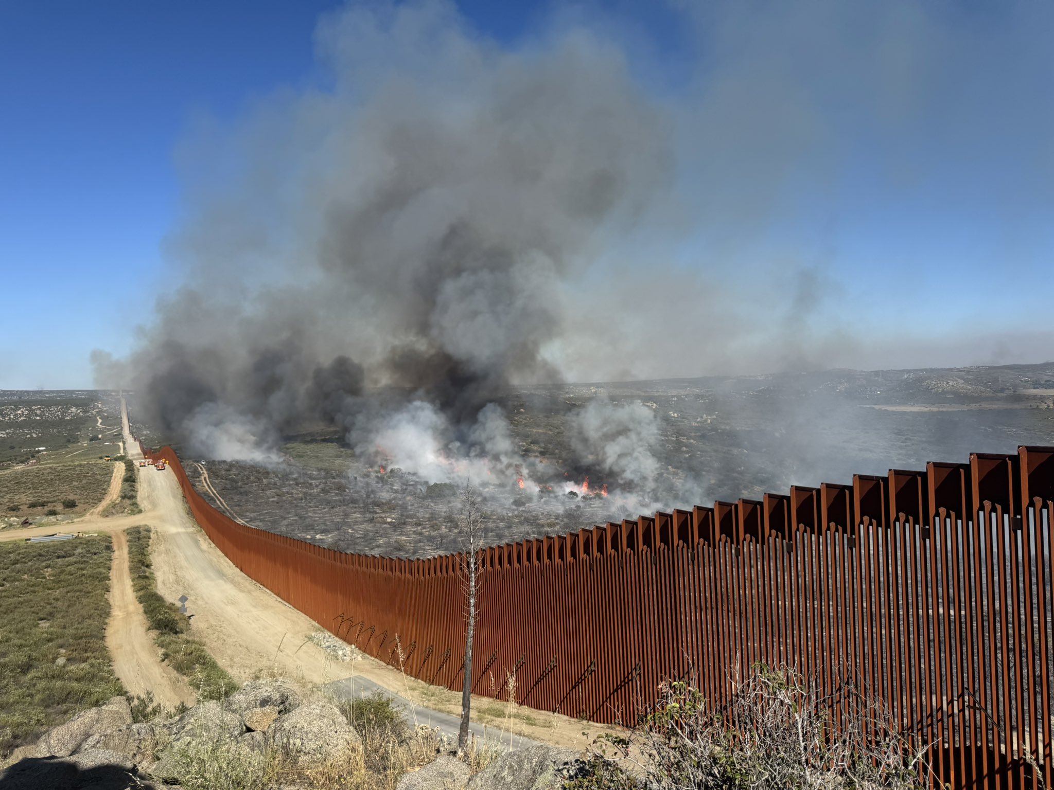 El siniestro se ubica al sur de la línea internacional, y ha requerido una respuesta binacional. Mientras los bomberos estadounidenses trabajan para contener el avance del fuego en el lado norte, equipos de emergencia mexicanos realizan esfuerzos similares en su territorio. El área afectada presenta vegetación seca y condiciones propicias para la propagación del fuego.