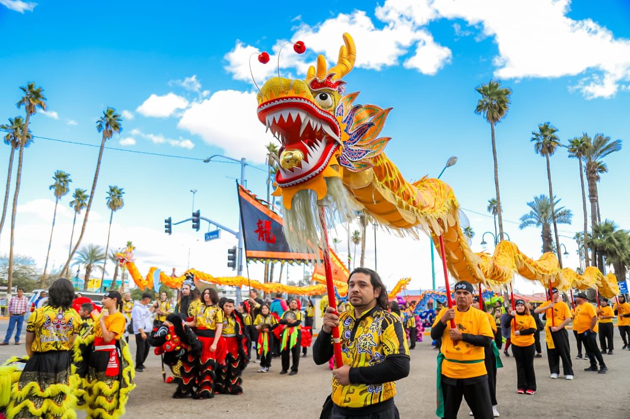 Las celebraciones arrancaron con un desfile con contingentes de danza de dragones y leones chinos, durante el trayecto se realizó el corte de listón en dos comercios que impulsan el cuidado del barrio chino mexicalense.