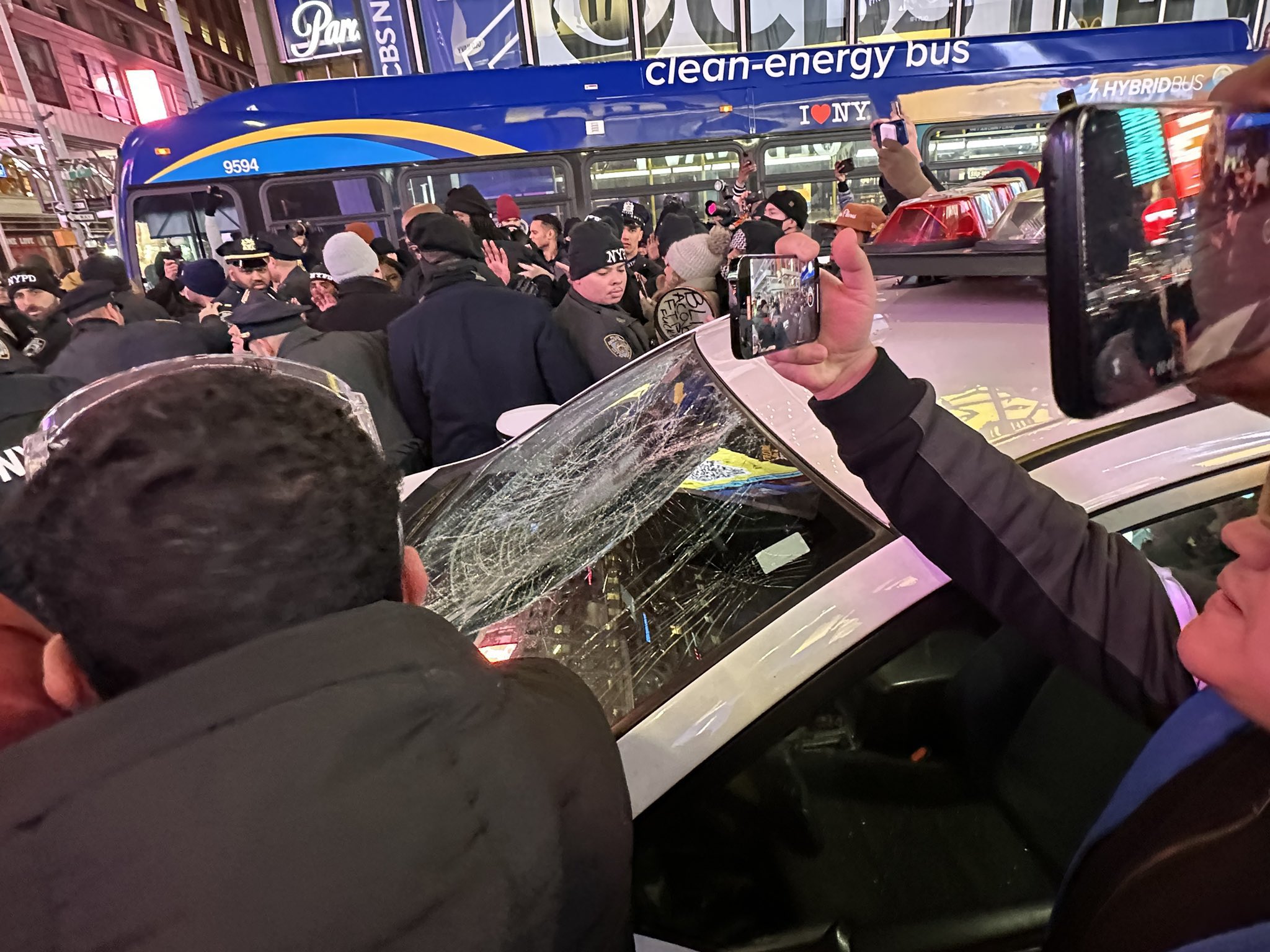 En Nueva York ya han circulado videos en los cuales se aprecian personas caminando en Time Square, incluso hay videos en donde un protestante destruye el parabrisas de una patrulla de la Policía de Nueva York.
