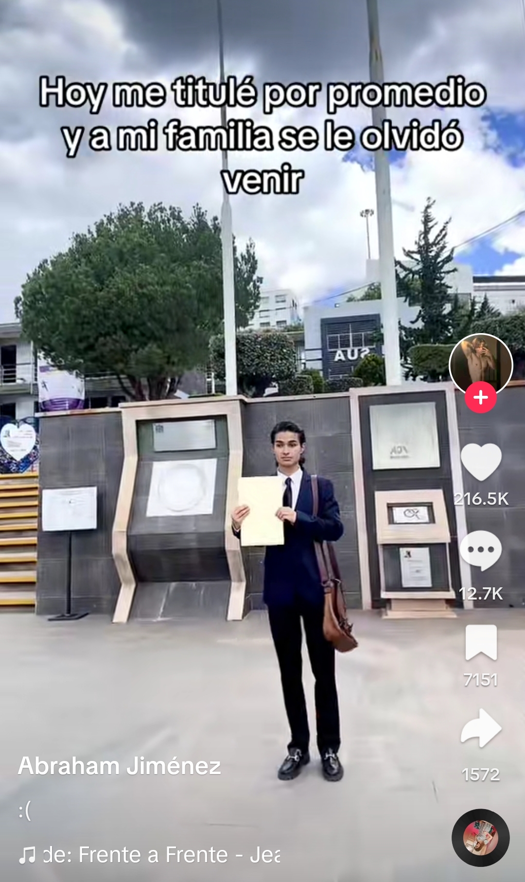 Sin precisar el lugar o la escuela, en el video se aprecia a Abraham posando con el reconocimiento a los pies del asta de bandera de la institución, acompañado con la canción “Sólo queda”, lo que demuestra el momento amargo que paso el estudiante.