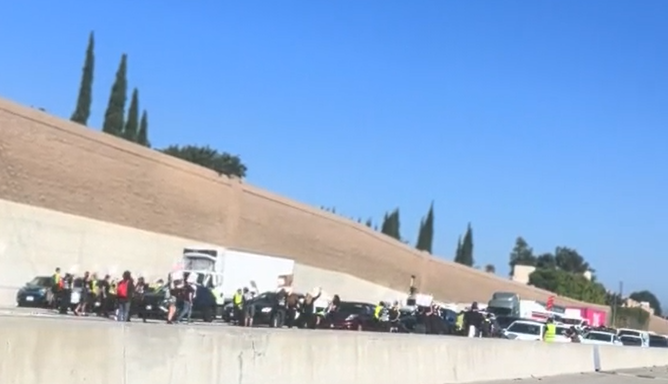 La Patrulla de Carreteras de California (CHP) llegó rápidamente y despejó a los manifestantes de los carriles de tráfico. El grupo, de varias decenas de personas, fue escoltado fuera de la carretera mientras marchaban por el arcén. Para las 9:40 a.m., todos los carriles, excepto uno, estaban nuevamente abiertos al tráfico lento.