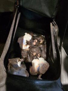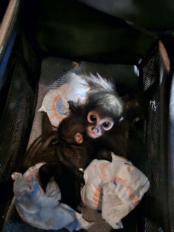 Durante la segunda inspección, los oficiales descubrieron tres monos araña bebés vivos. Los oficiales incautaron a los monos y los llevaron a un lugar seguro donde permanecerán en cuarentena con los Servicios Veterinarios del Departamento de Agricultura hasta que encuentren un nuevo hogar.