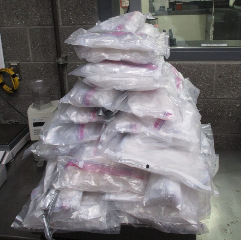 - 60 paquetes de metanfetamina, con un peso de 167.77 libras, de un conductor masculino de 25 años.