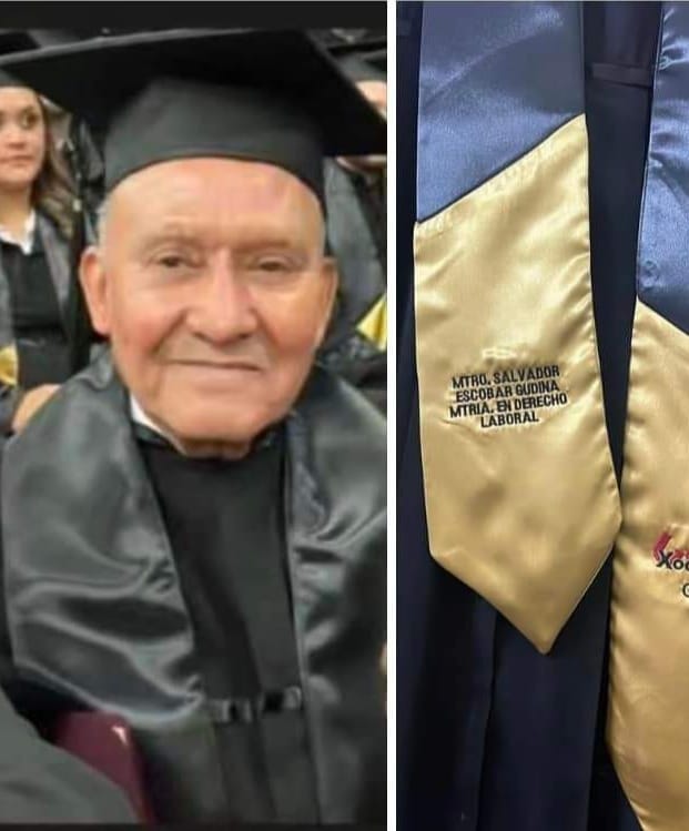 MEXICALI.- Salvador Escobar tiene 64 años, y a esa edad continúa estudiando, al grado que recientemente se recibió como maestro por tercera vez, en esta ocasión en la especialidad de Derecho Laboral en Mexicali, Baja California.