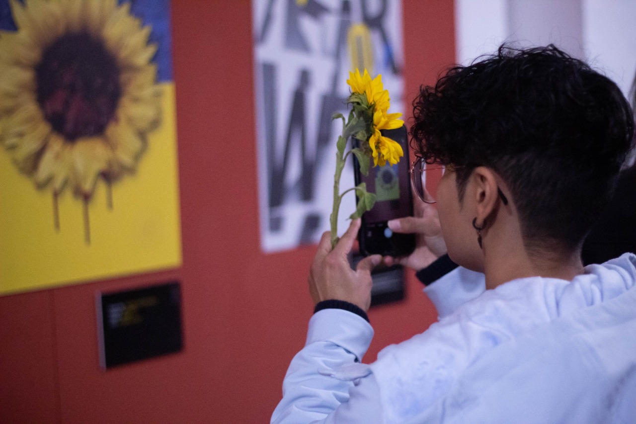 La exposición consta de 60 imágenes que evocan la solidaridad del mundo con el pueblo ucraniano por la invasión rusa, actividad artística que recauda fondos para los damnificados por la guerra a través de la venta de los carteles, libros y camisetas con los diseños seleccionados que pueden ser adquiridos en el correo electrónico dfp@enigmacreative.com
