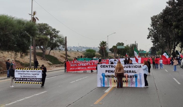Trabajadores del Poder Judicial Federal han establecido un bloqueo en la Vía Rápida Oriente, afectando tanto los carriles centrales como la lateral de esta importante arteria vial en Tijuana. La protesta, que se lleva a cabo a la altura del Centro Cultural Tijuana, tiene como objetivo manifestar su descontento con ciertas decisiones administrativas y laborales que consideran perjudiciales para su labor y autonomía.