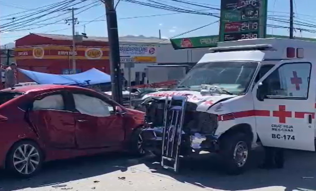 Tijuana | La mañana de este domingo, se registró un fuerte accidente en la avenida Las Torres, en la zona del mercado sobre ruedas, involucrando a un vehículo particular y una ambulancia de la Cruz Roja. El choque resultó en múltiples lesionados y una considerable movilización de servicios de emergencia.